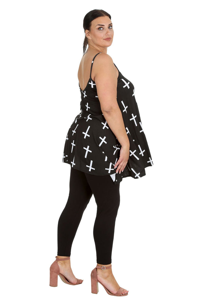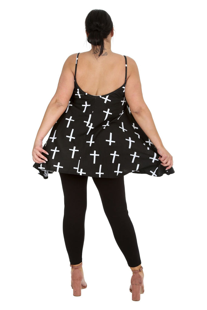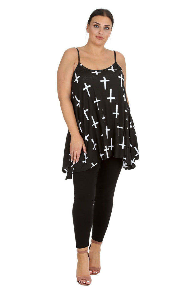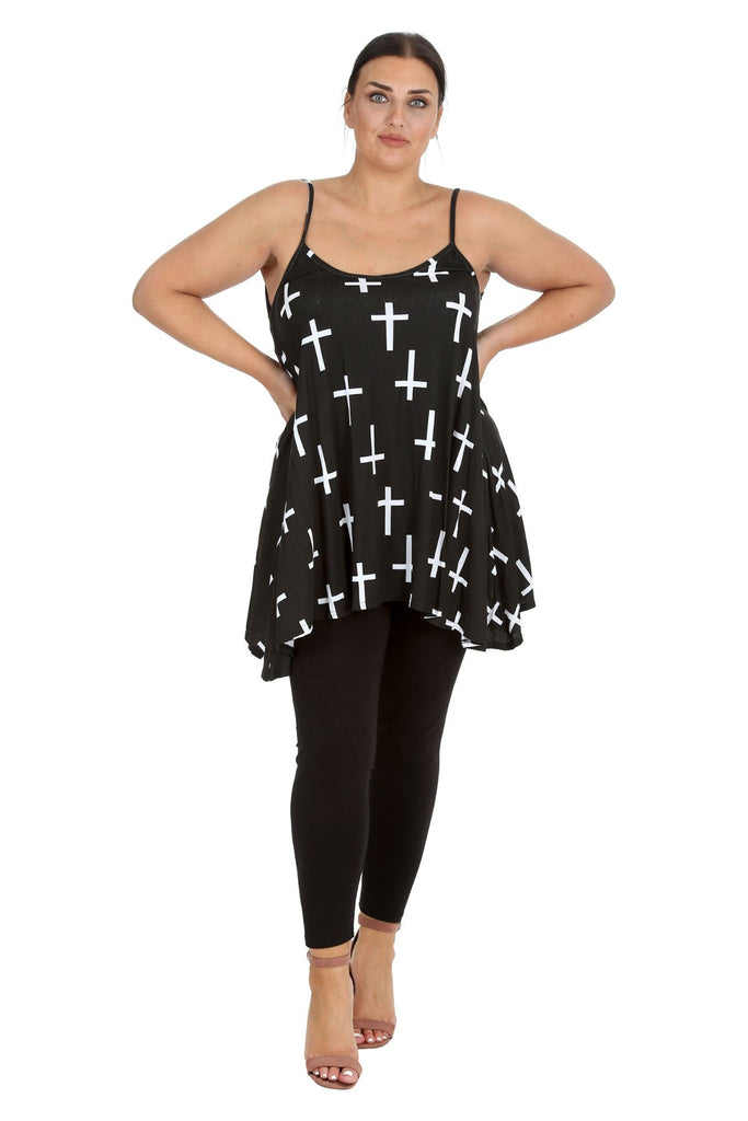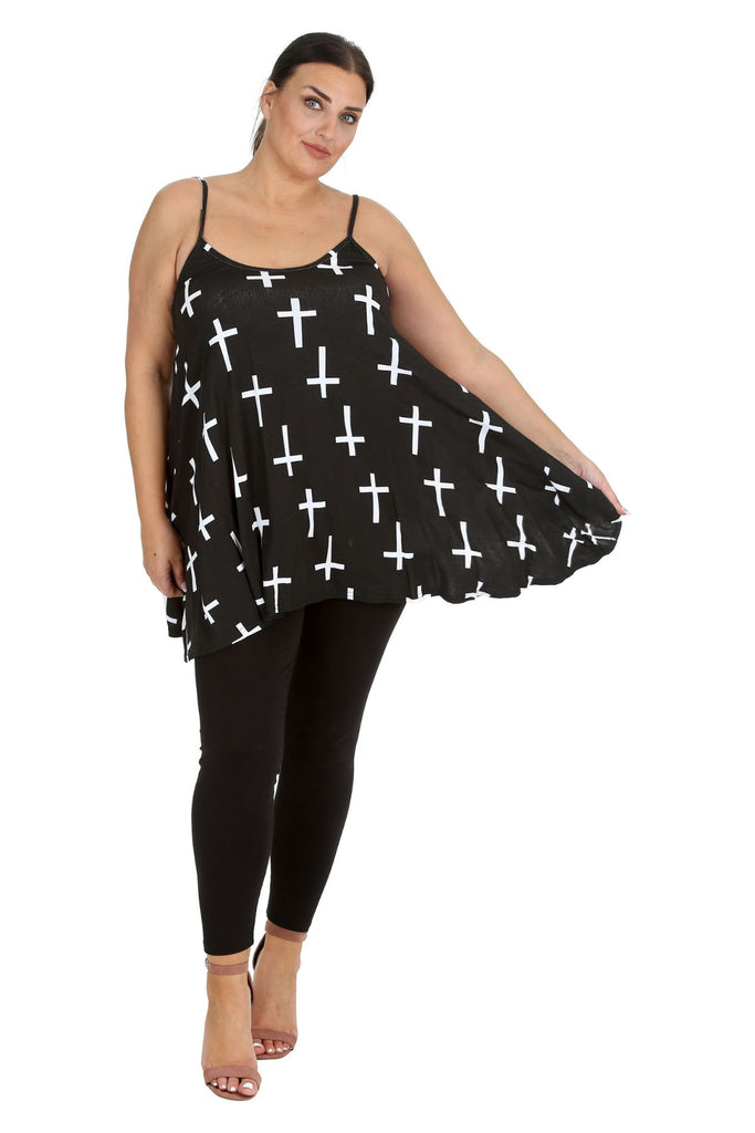 Unapologetically bold, effortlessly chic this Cross Print Swing Cami Top is your go-to piece when you want to feel powerful and beautifully free. Designed for movement and confidence, its swing silhouette flows with grace while the edgy cross print adds fearless energy to your everyday look.