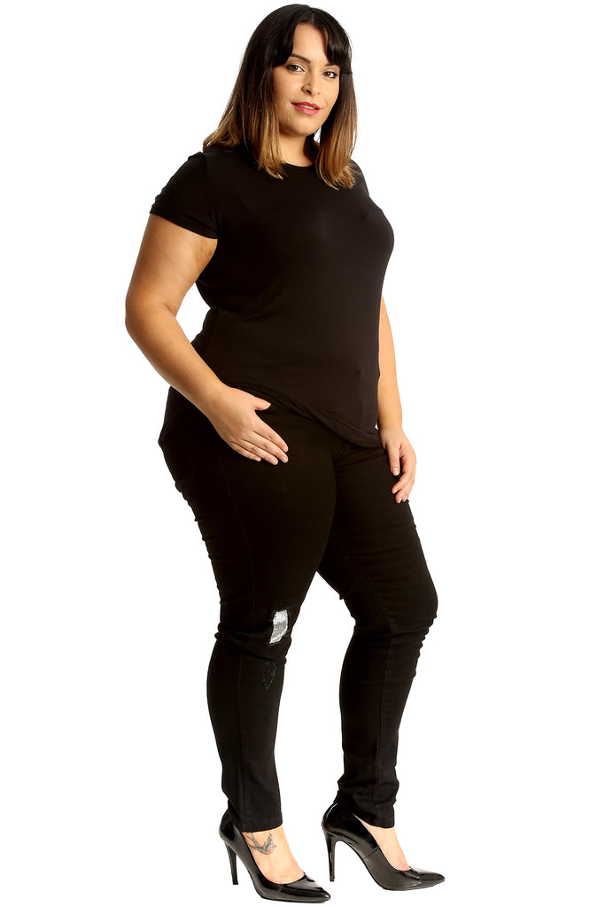 Let your denim do the talking. These Silver Sequin Patched Ripped Jeans are made to turn heads pairing edgy, distressed details with shimmering sequin accents for a fearless, fashion-forward look. Designed to fit and flatter curves, they offer stretch, comfort, and undeniable sparkle in every stride.