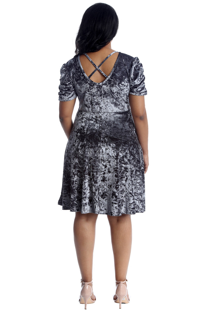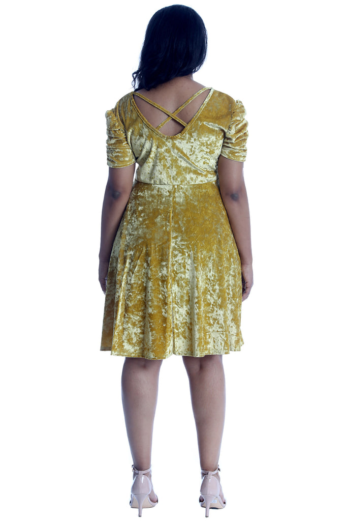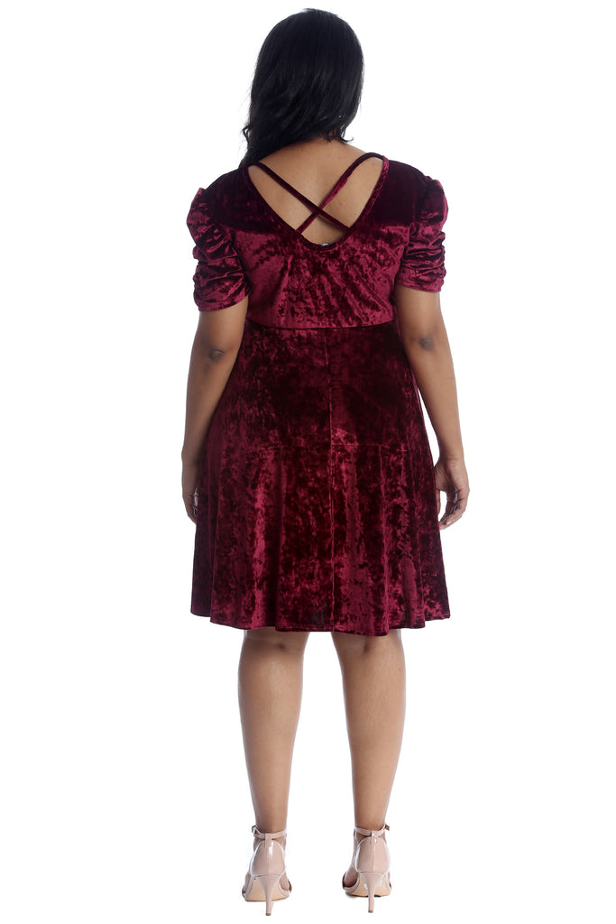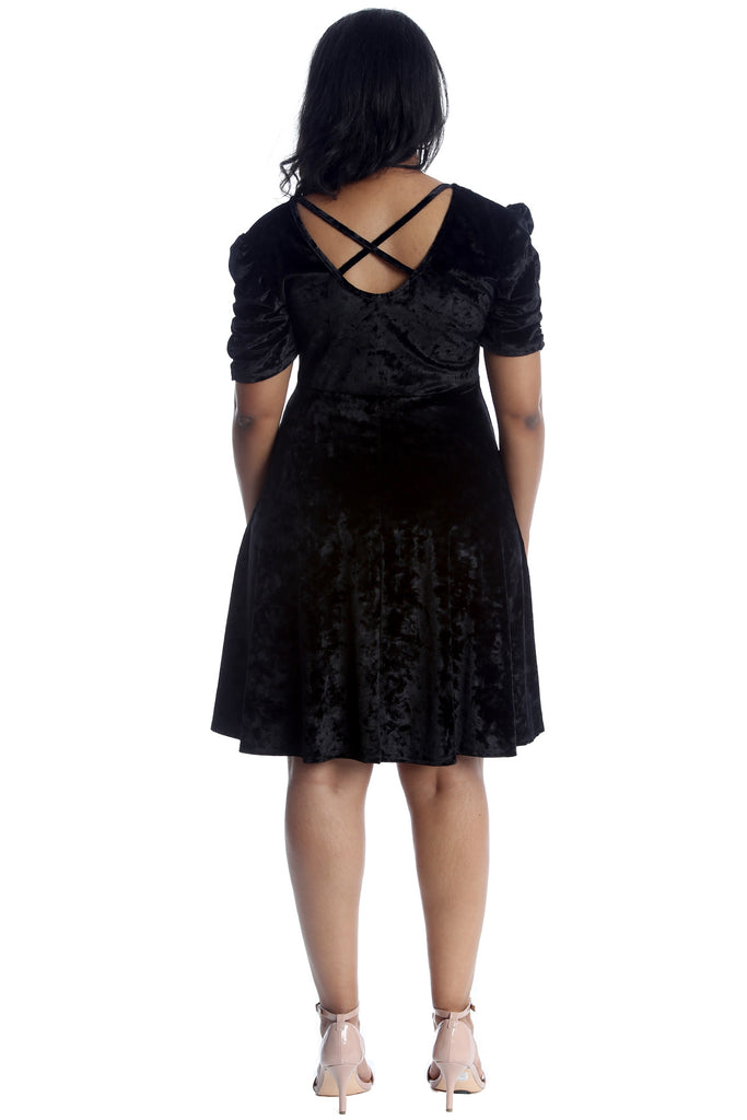 Unleash your inner radiance in this Skater Style Velvet Cross Back Dress a sultry statement piece that celebrates curves and confidence. The plush velvet fabric embraces your silhouette with softness, while the flared skater cut adds playful movement and grace to every step.