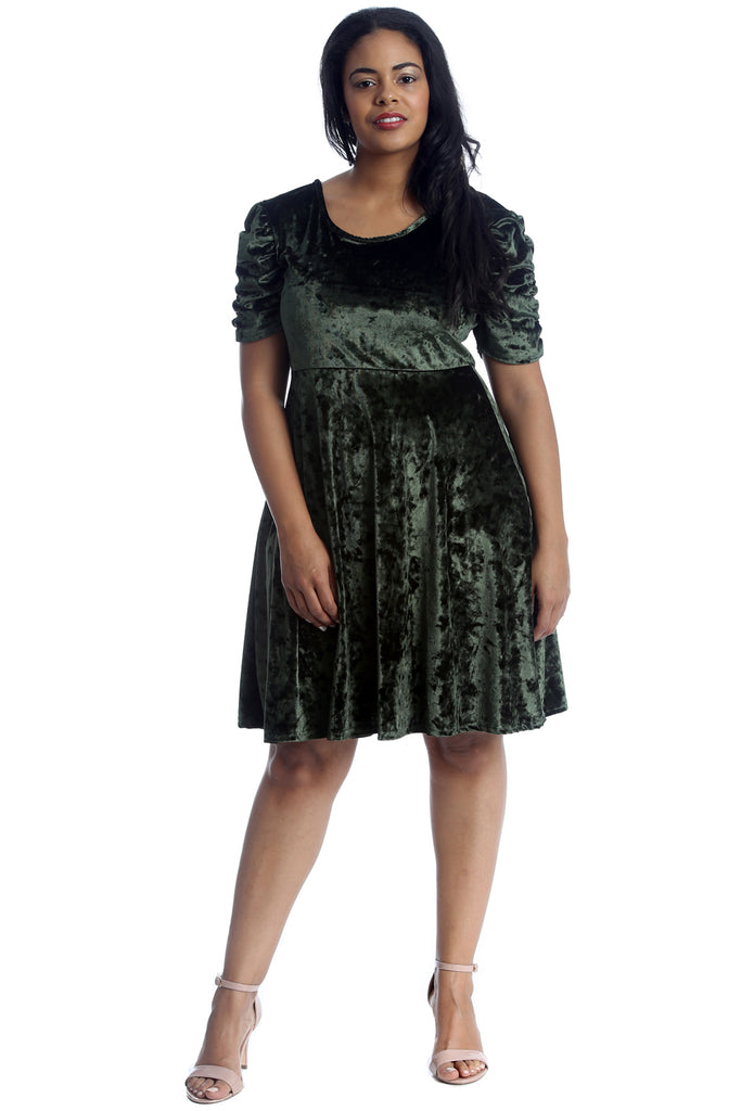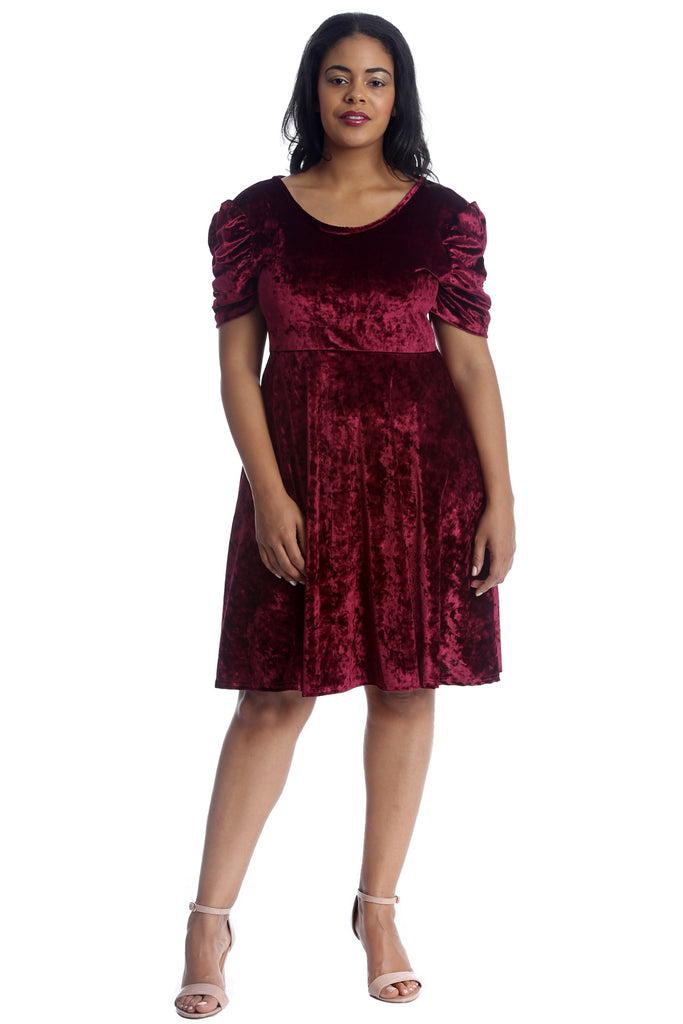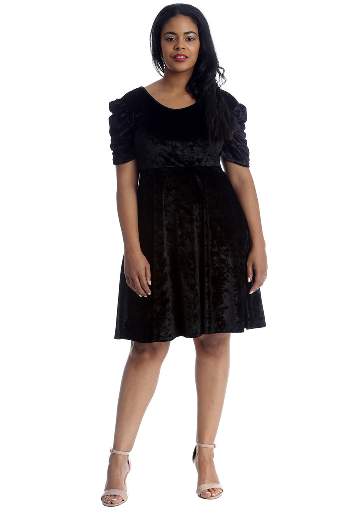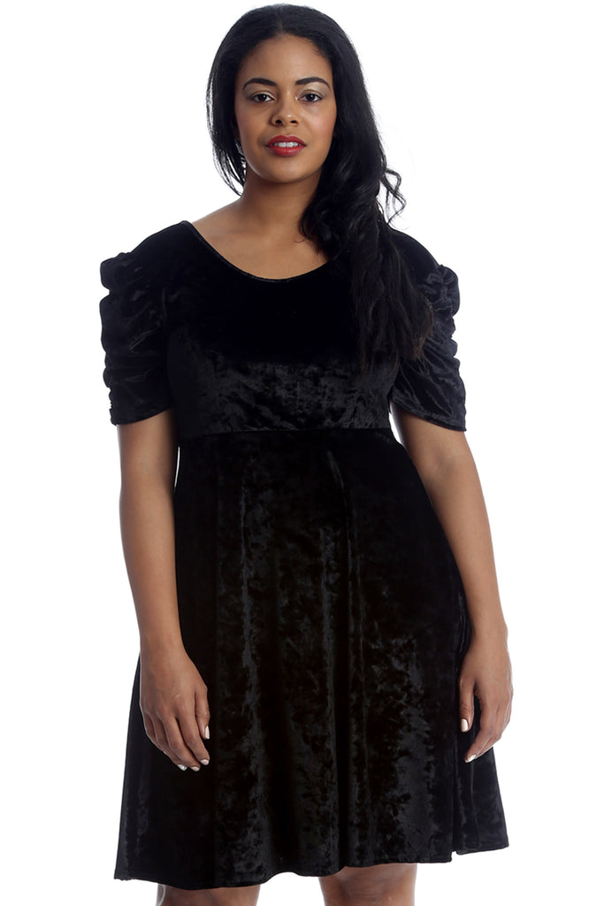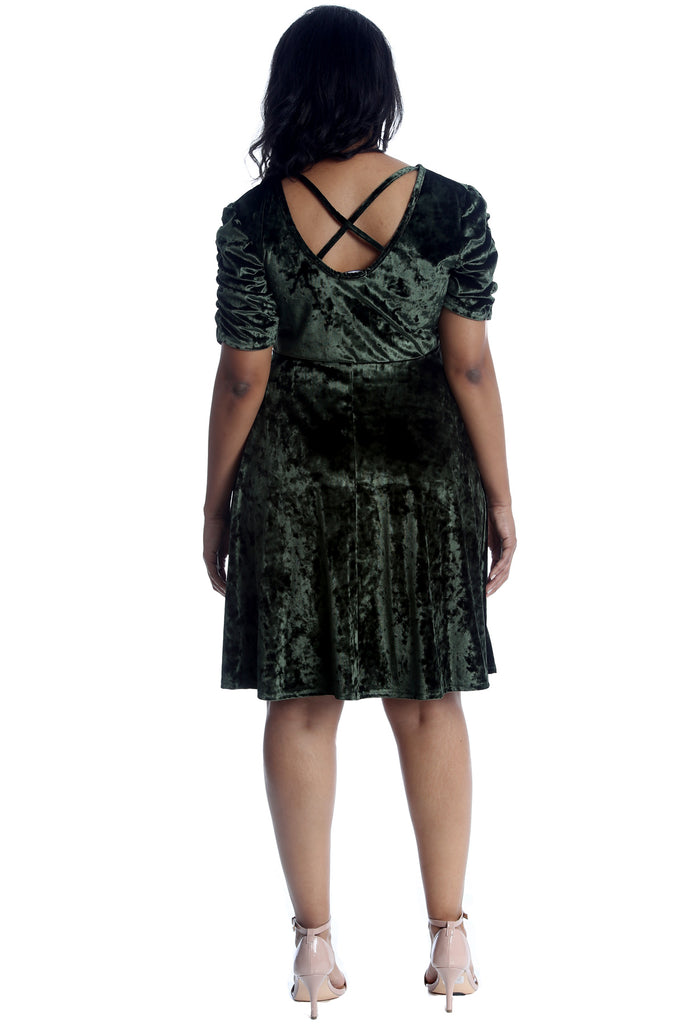 Unleash your inner radiance in this Skater Style Velvet Cross Back Dress a sultry statement piece that celebrates curves and confidence. The plush velvet fabric embraces your silhouette with softness, while the flared skater cut adds playful movement and grace to every step.