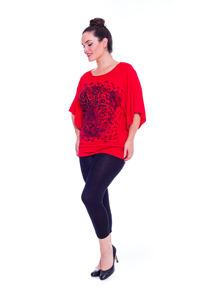 This leopard print top has 3/4 length sleeves, and a gathered effect at your hips. This will sure show off your fierce attitude, especially when paired with plain leggings and heels. For a toned down attitude simply wear flats.