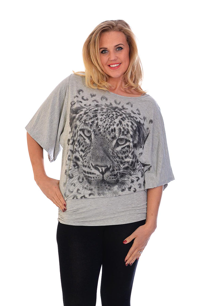 1003 Leopard Sequin Batwing Top