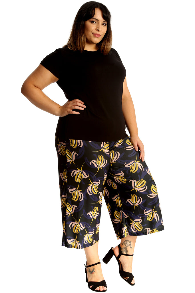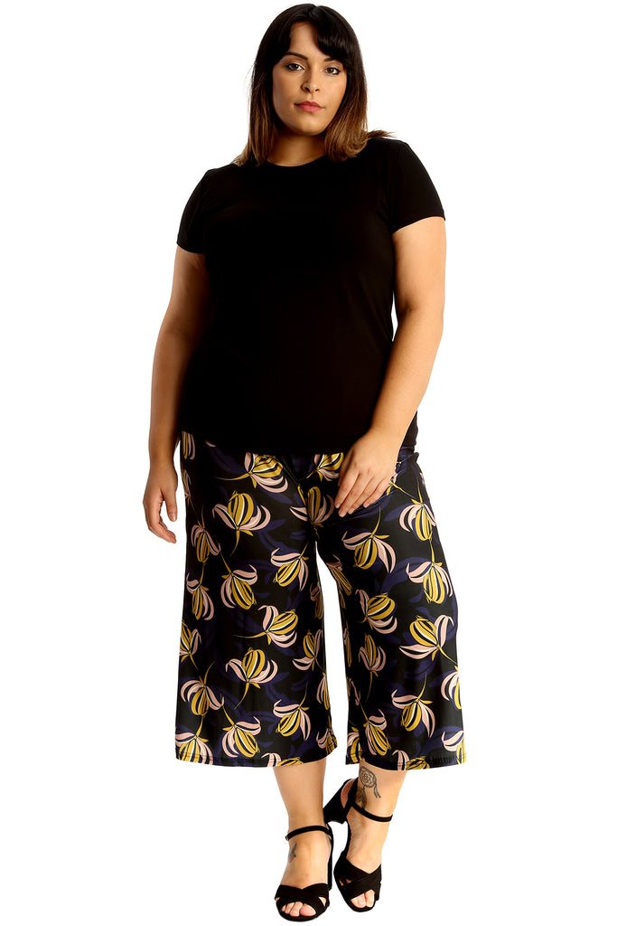 Step into blooming confidence with our Plus Size Floral Print Culottes, crafted to flatter every curve with grace. These easy-breezy trousers feature a vibrant floral design and a wide-leg silhouette, perfect for adding feminine flair to your everyday wardrobe.