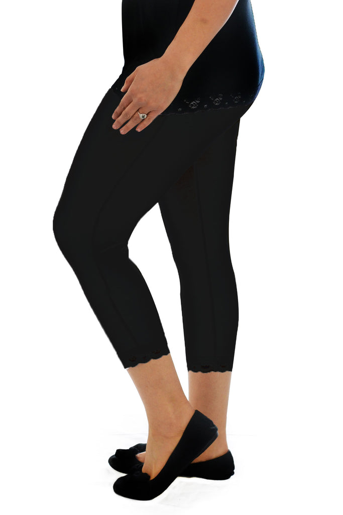 These cropped lace trim leggings aren't just a wardrobe essential, they’re your daily declaration of style, strength, and self-love. Designed with an easy elastic waist and soft, stretch-fit fabric, they move with you, effortlessly and beautifully.