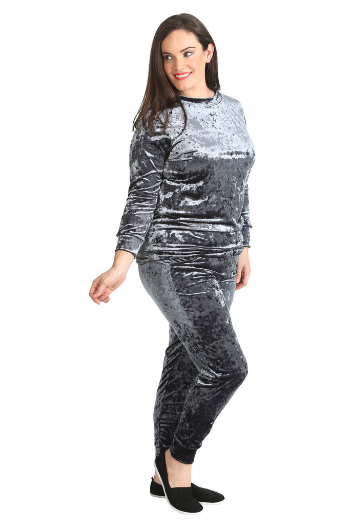 Crafted in rich velvet with a relaxed silhouette, it offers a flattering fit from size 14 to 26-28. Whether you’re lounging at home, running errands, or owning your day out, this tracksuit delivers cozy sophistication without compromising your edge.