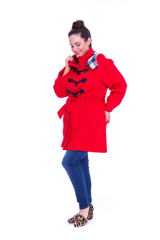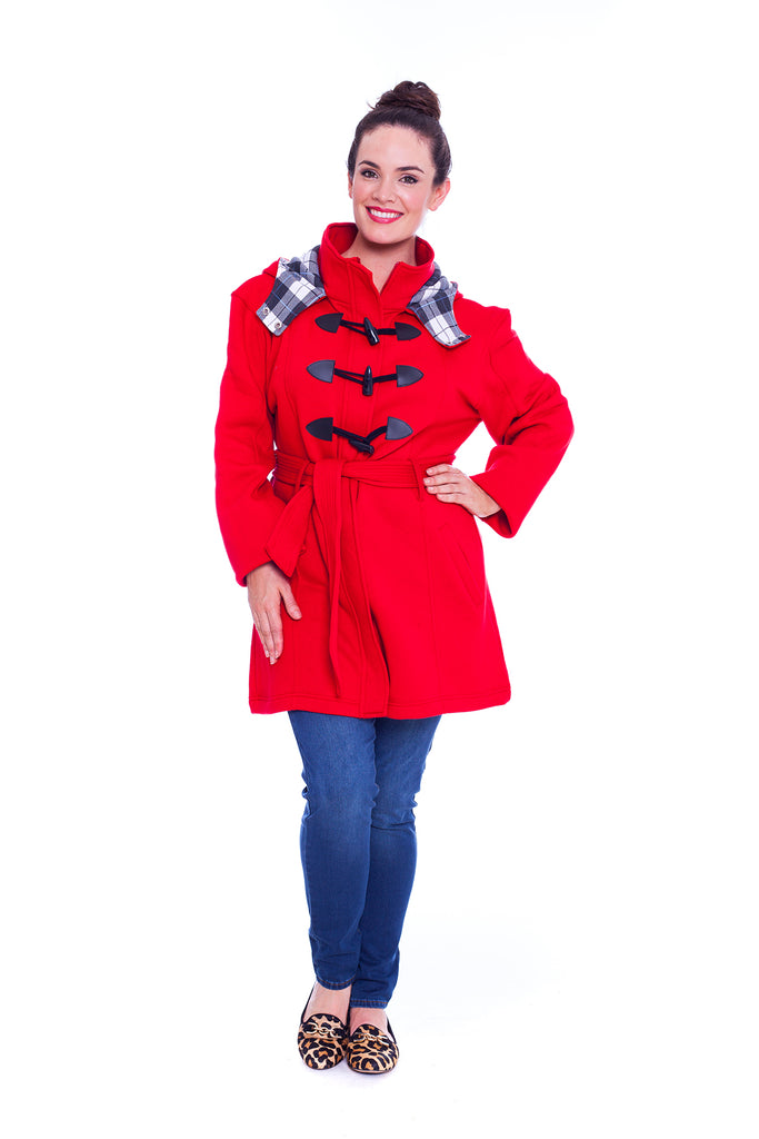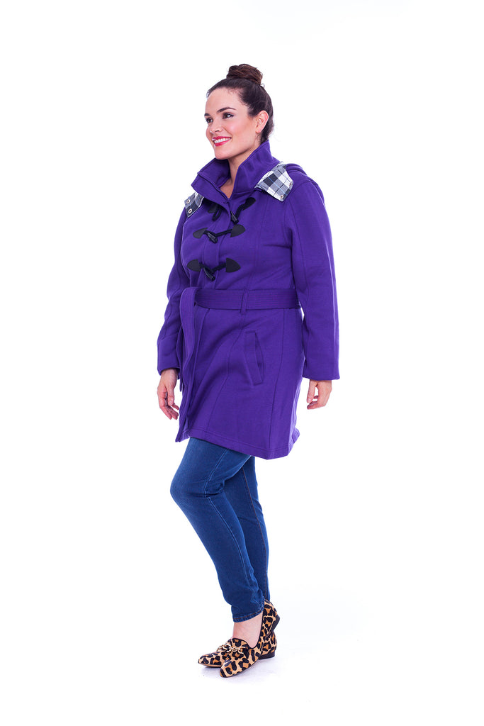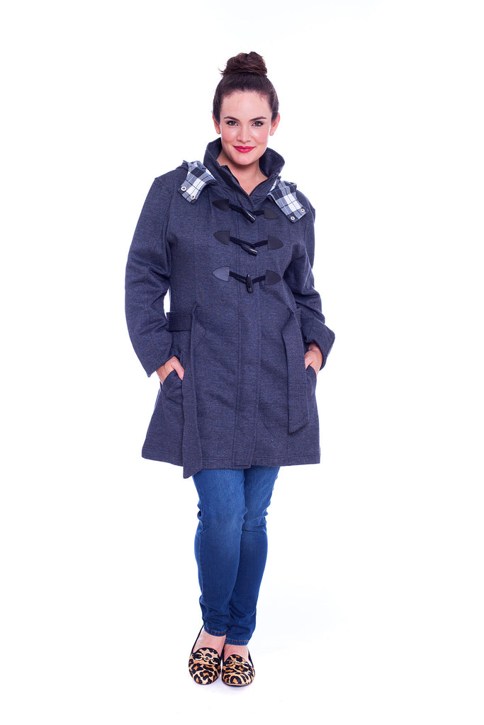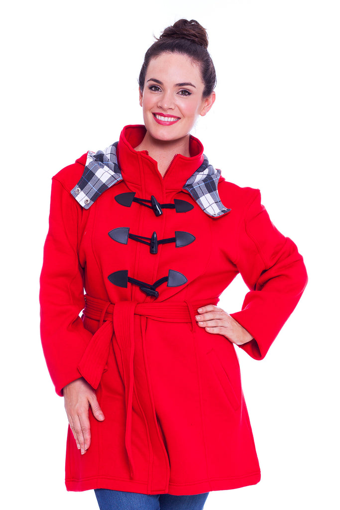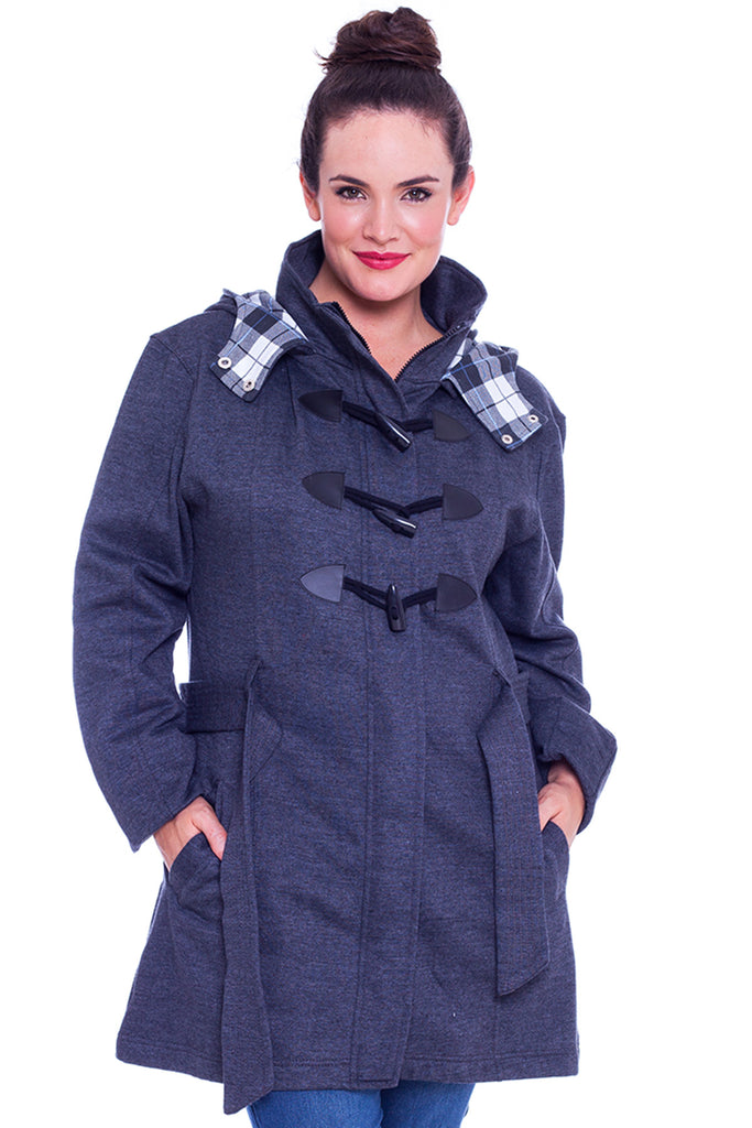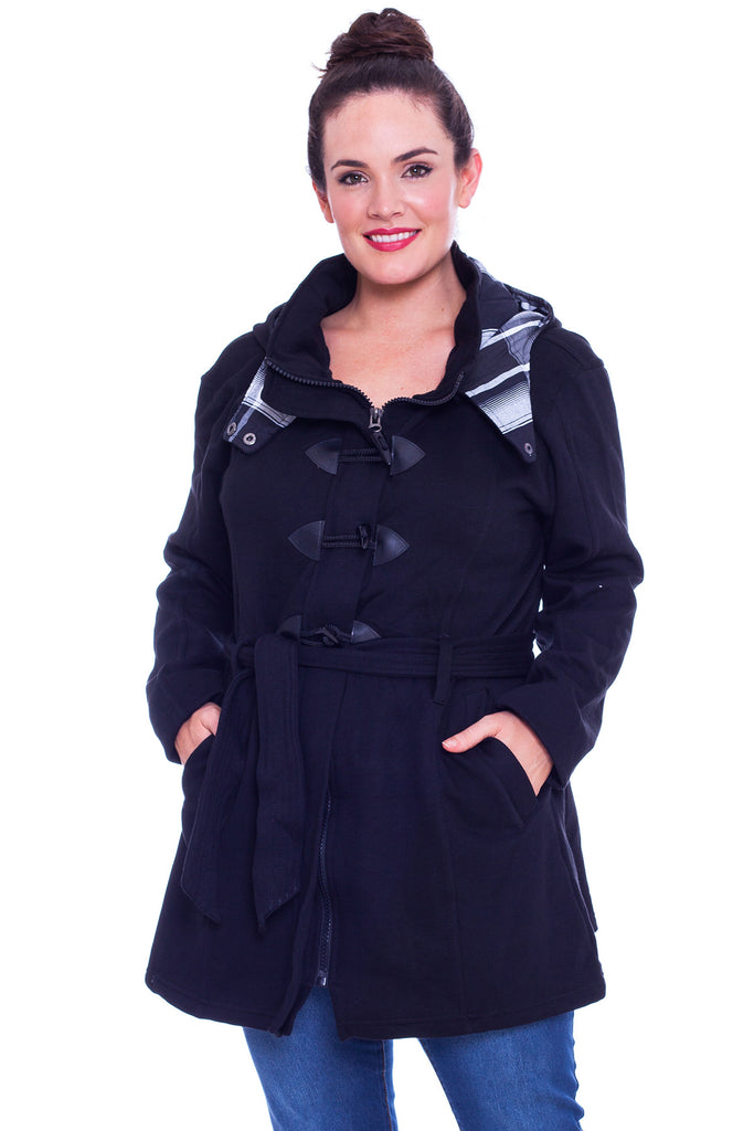 The Ladies Military Style Duffle Coat is ideal for when the colder weather sets in, featuring a super soft fleece construction along with a Check pattern lined hood, a full button front and reversible belt for a comfortable fit. This Nouvelle Jacket also comes with two open pockets to the front.