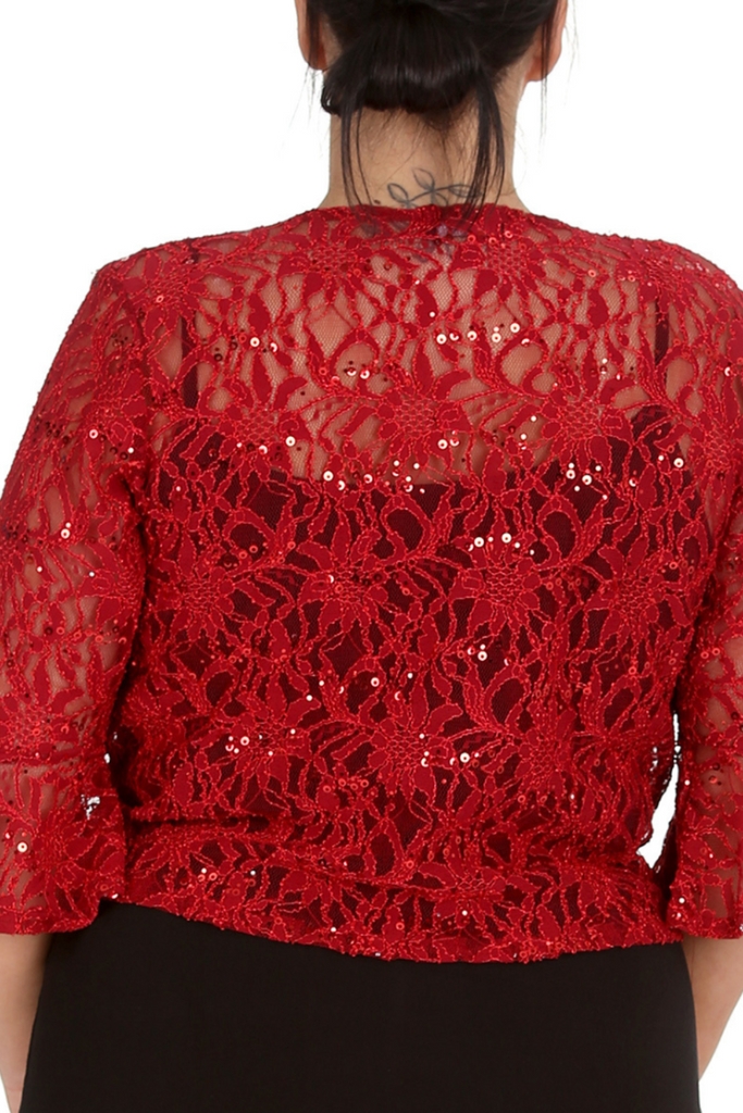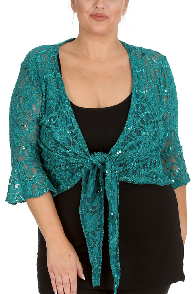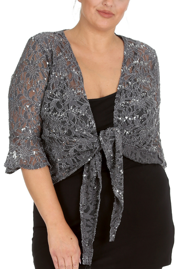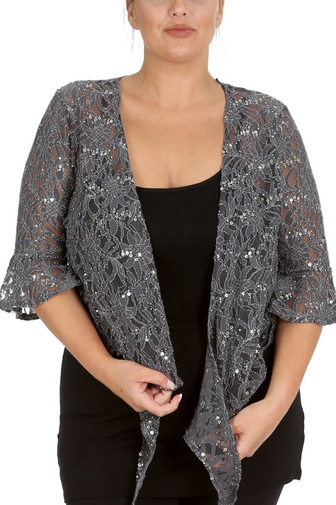 1091 Plus Size Sequin Lace Shrug Elegant Sparkle
