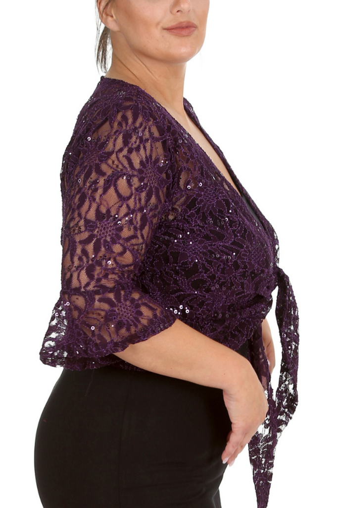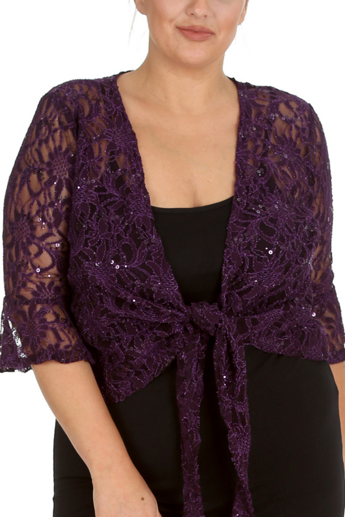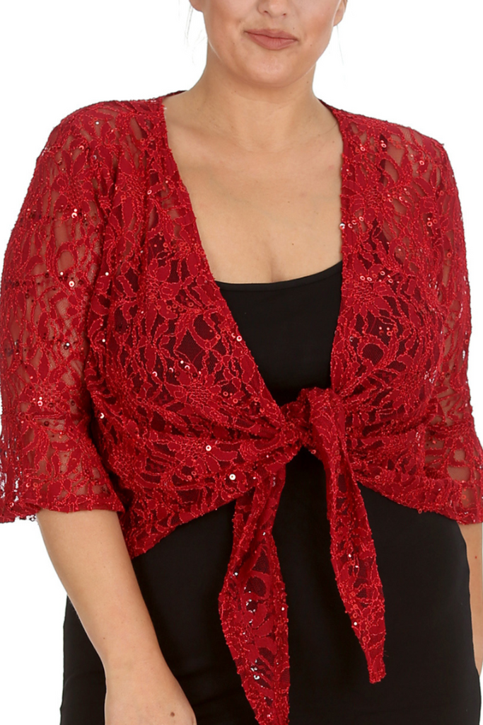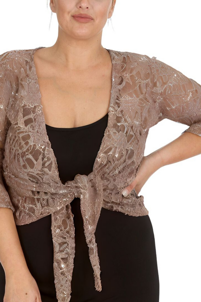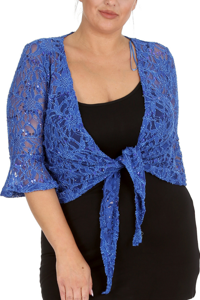 1091 Plus Size Sequin Lace Shrug Elegant Sparkle