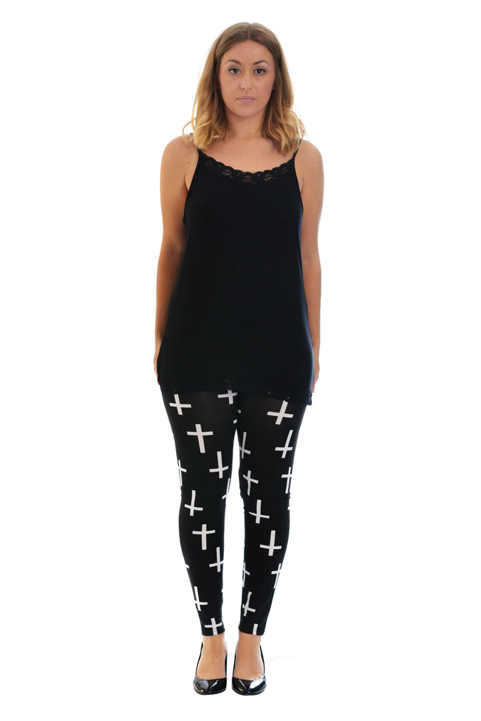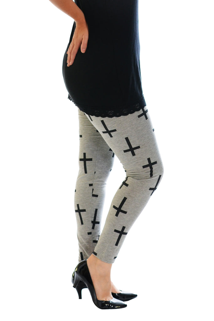Tags: cross print leggings, bold plus size leggings, footless tights, edgy fashion, Nouvelle Collection