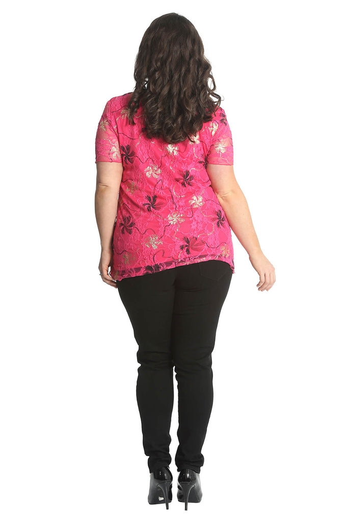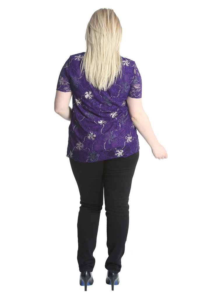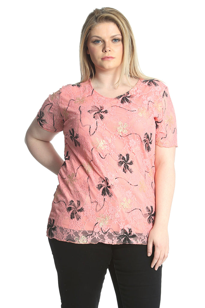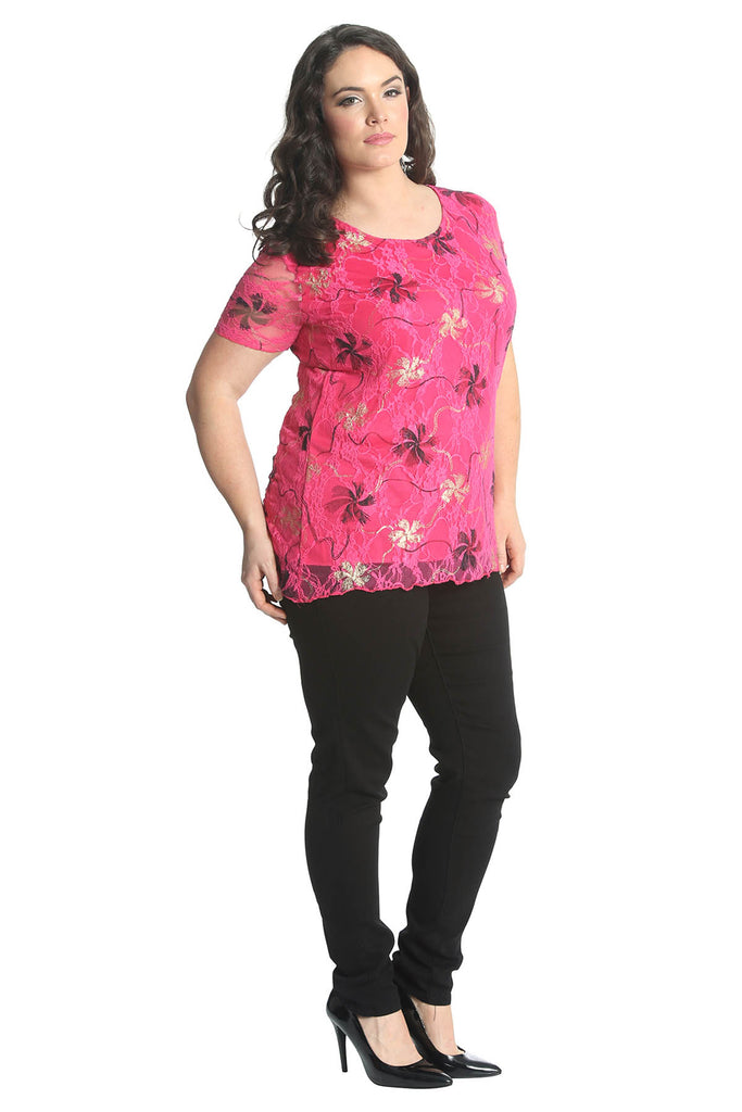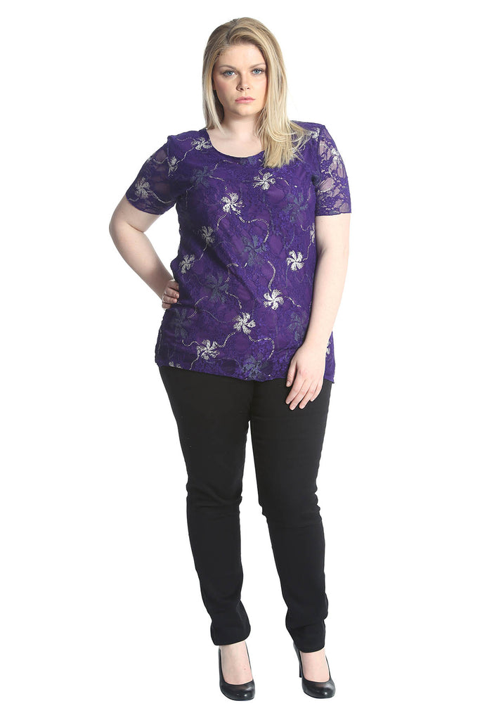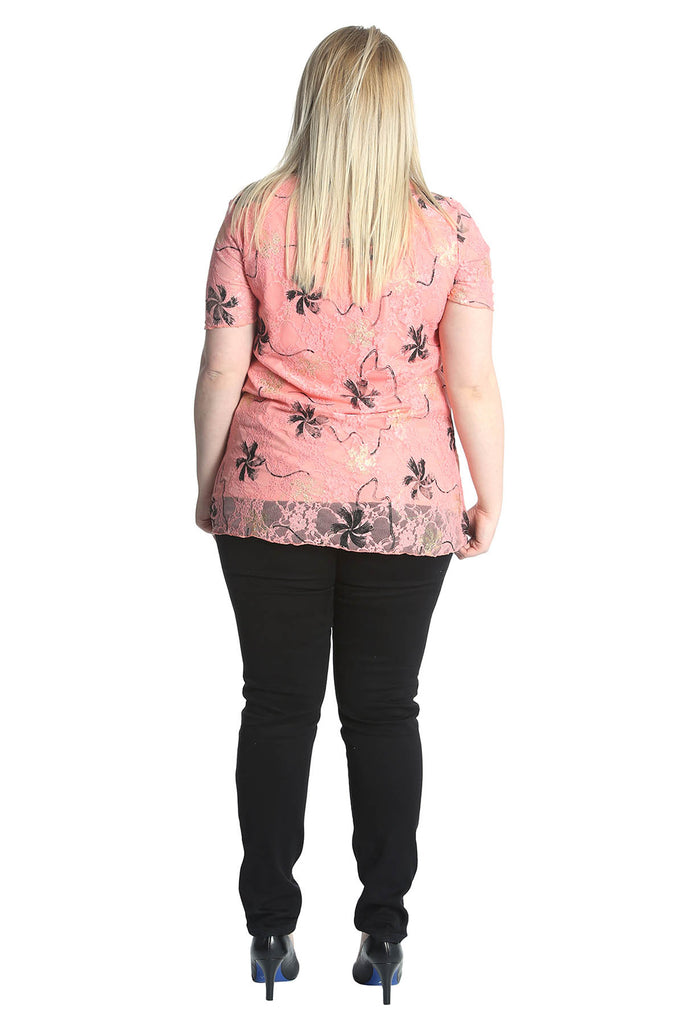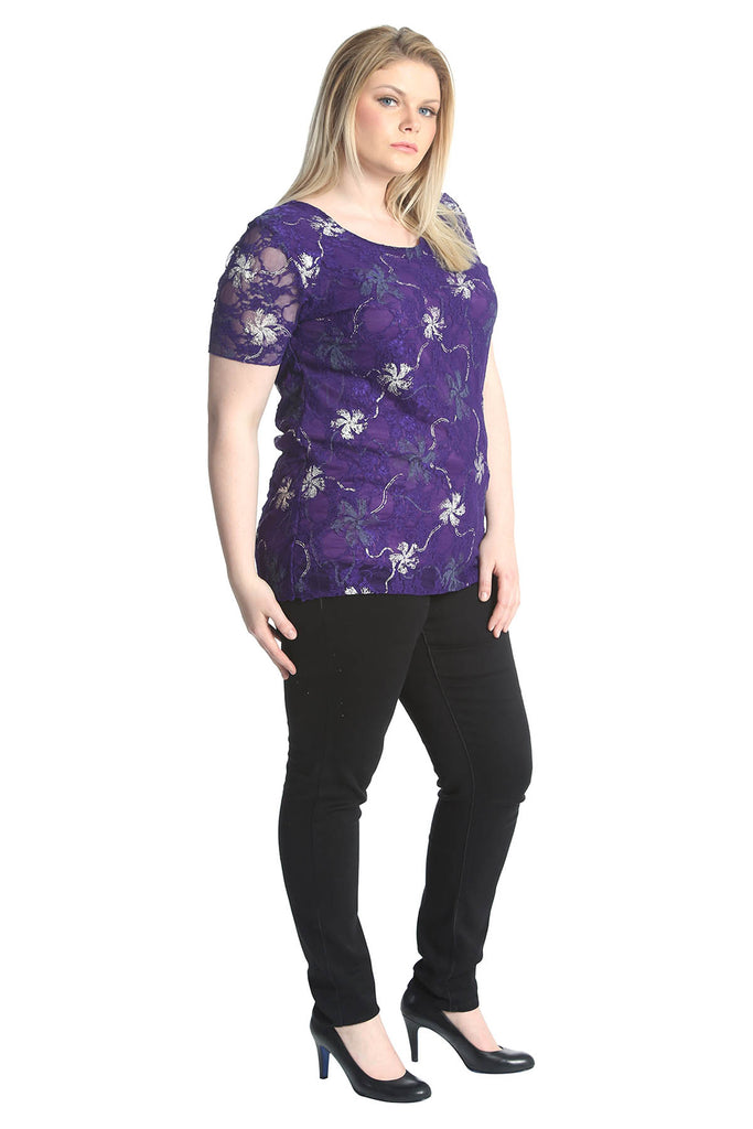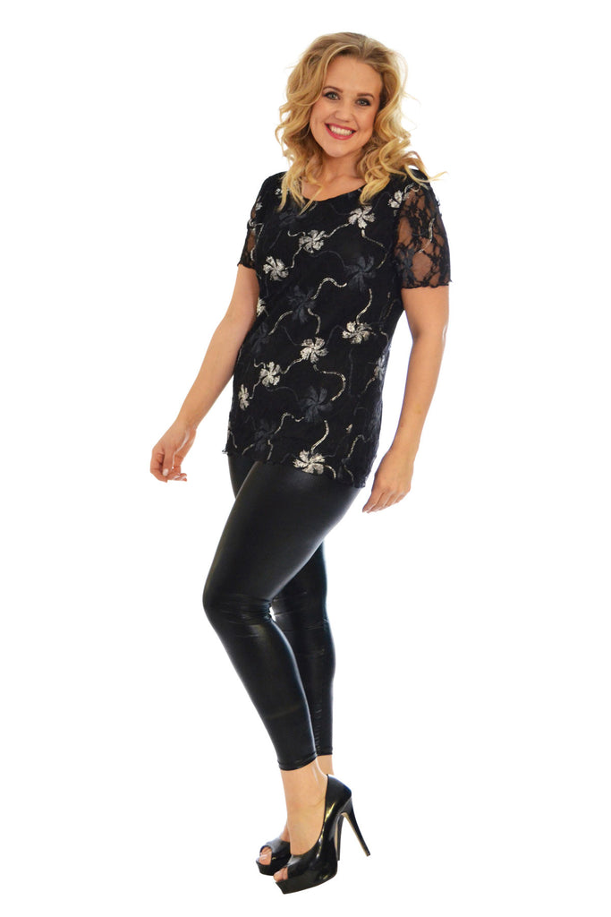 A Gorgeous lace lined floral tunic, featuring a floral foil print design. The item has short sleeves and a elegant round neck. This item can be worn with wet look leggings and High heels, The look is very fashionable giving you a sexy edge appeal. Model Wears/Height: 5.9ft size 16