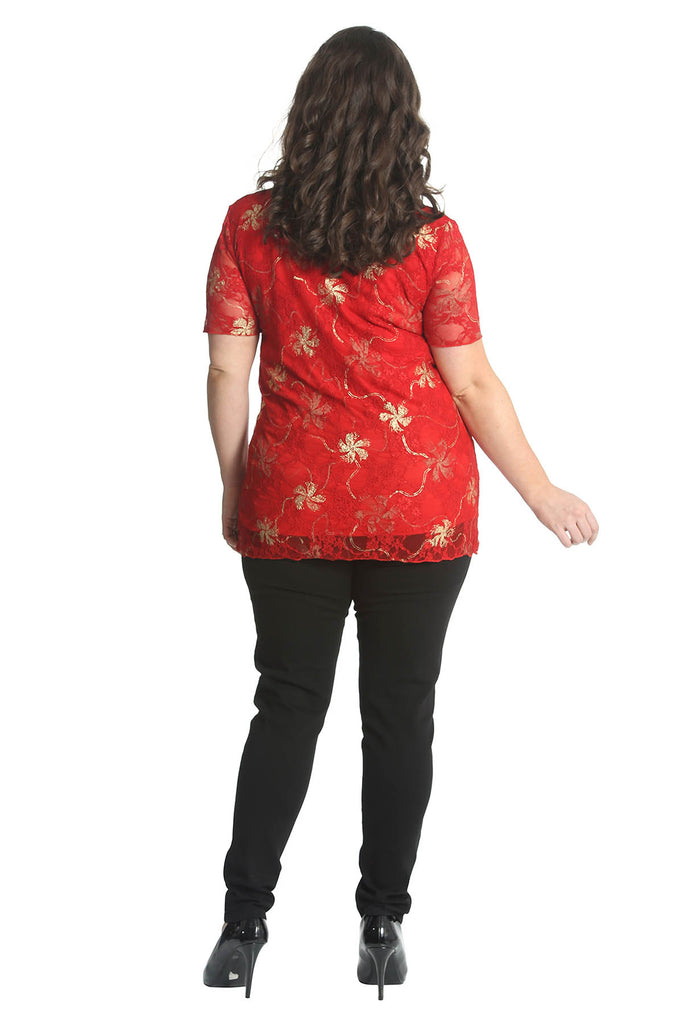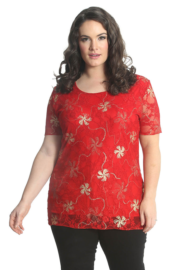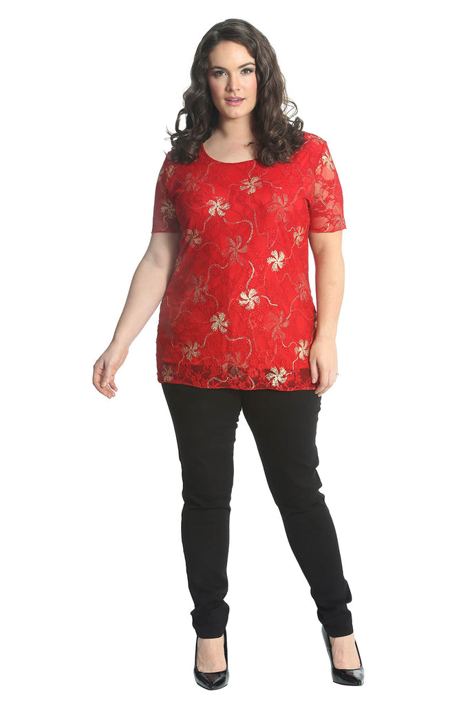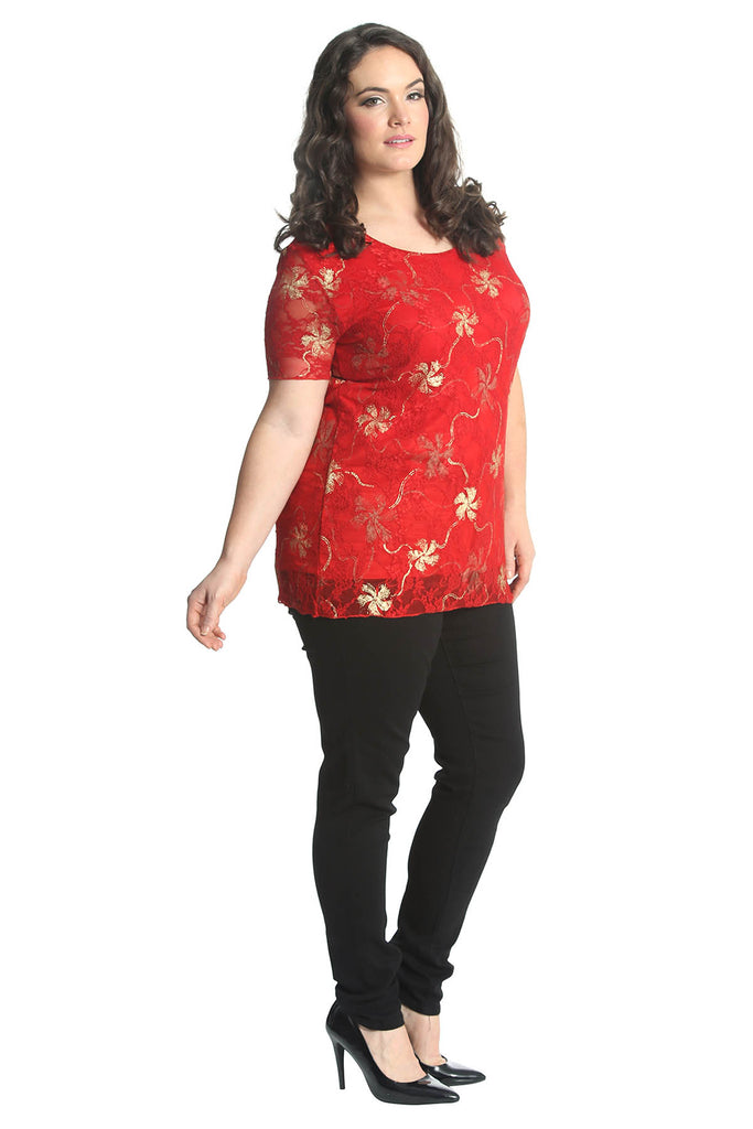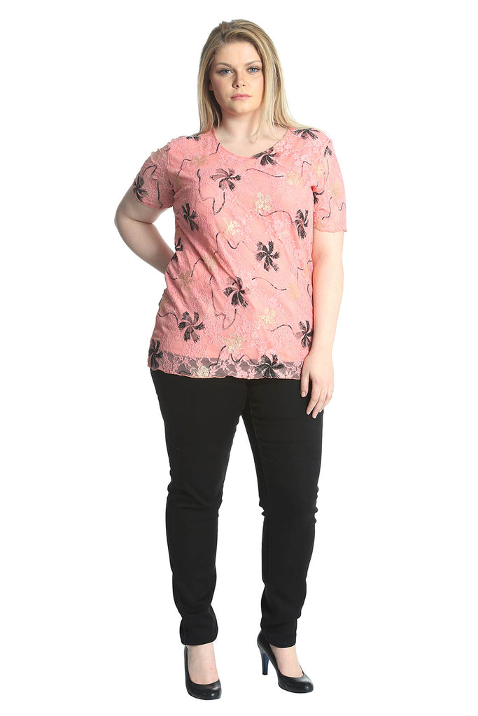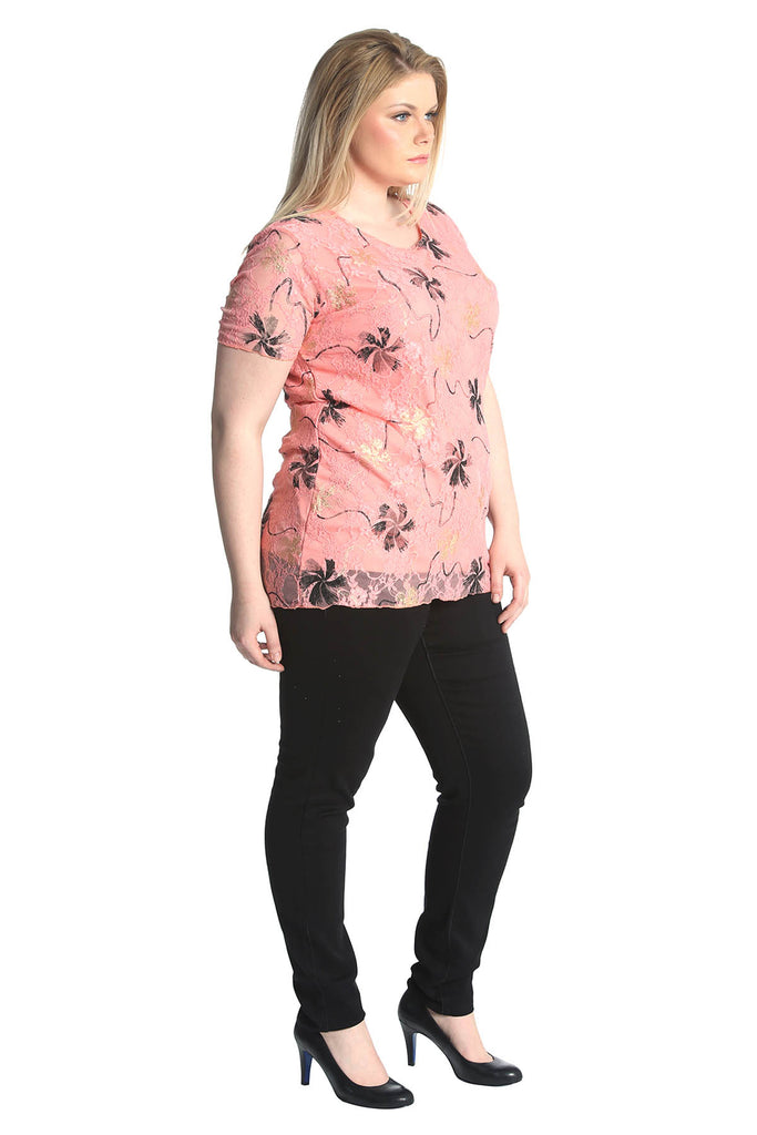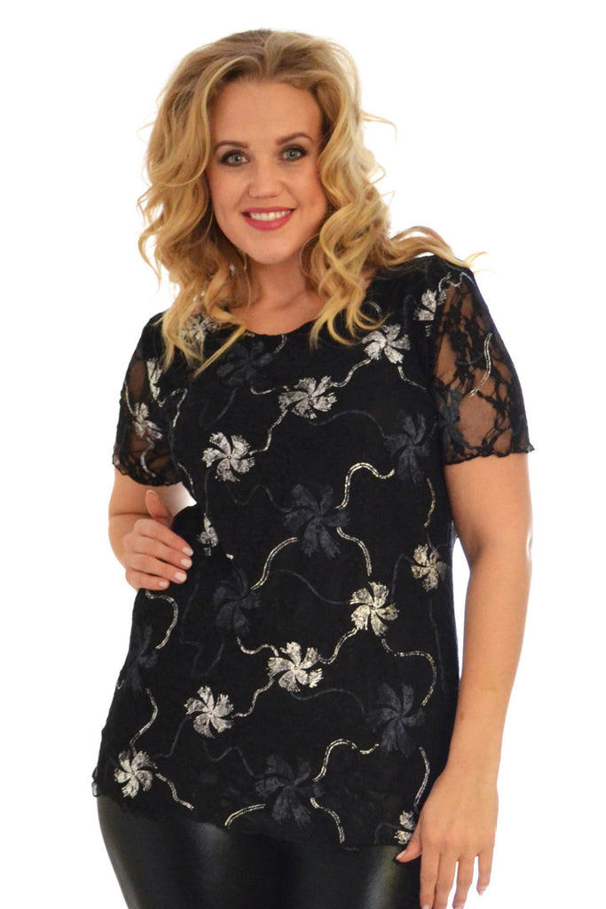 A Gorgeous lace lined floral tunic, featuring a floral foil print design. The item has short sleeves and a elegant round neck. This item can be worn with wet look leggings and High heels, The look is very fashionable giving you a sexy edge appeal. Model Wears/Height: 5.9ft size 16