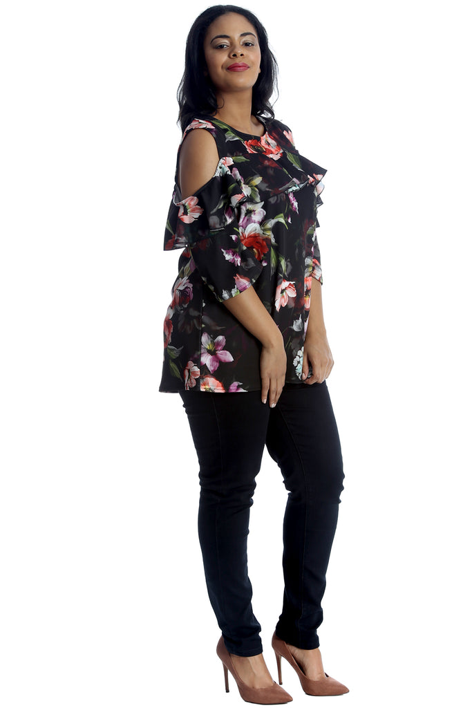 1402 Floral Print Cold Shoulder Top