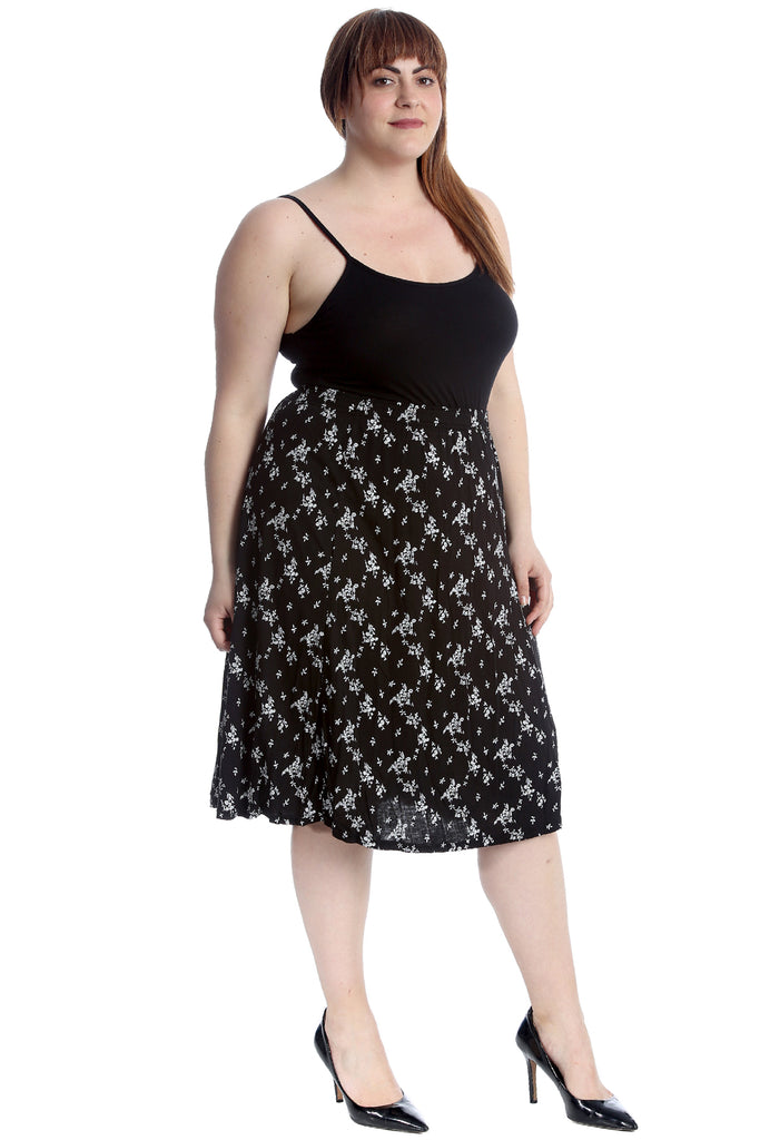 Floral Print Skater Skirt. Elasticated Waist & Knee Length.