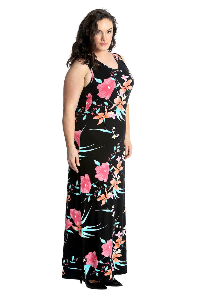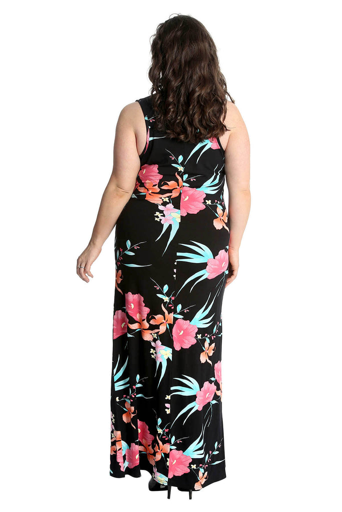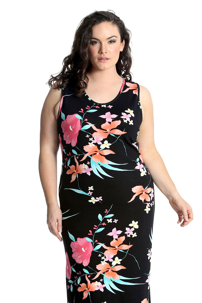 Let your confidence bloom in full colour. The Floral Print Sleeveless Maxi is your go-to for effortless beauty and graceful movement designed to celebrate your curves with ease and elegance.