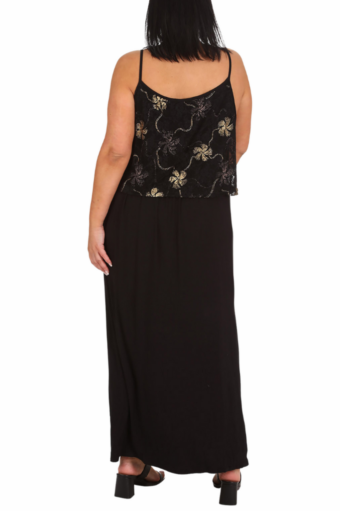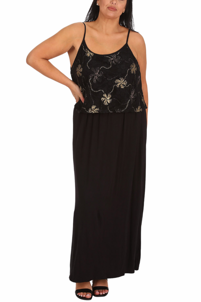 Crafted with a shimmering foil floral design, this dress brings a graceful glow to every step. Its soft, stretch-enhanced fabric flatters your figure while offering all-day comfort. Whether you're making an entrance at an evening gathering or feeling radiant on a sunny day, this maxi dress moves with you, never against you.