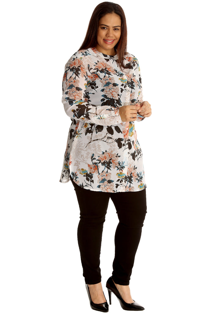 Tags: plus size chiffon shirt, jungle print top, collared blouse, bold summer top, Nouvelle Collection