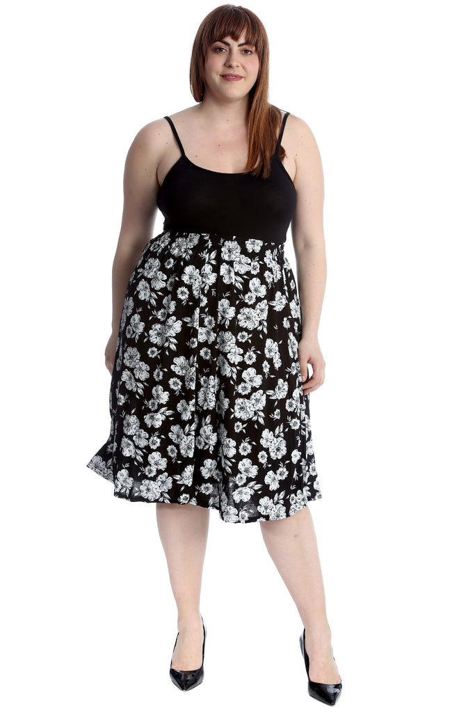 Turn every sidewalk into a runway. This Monochrome Floral Print Skirt strikes the perfect balance between classic charm and modern edge. Designed to flow effortlessly around your curves, the knee-length silhouette and soft elasticated waistband offer all-day comfort without compromising on style.