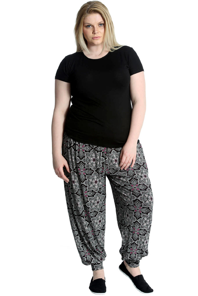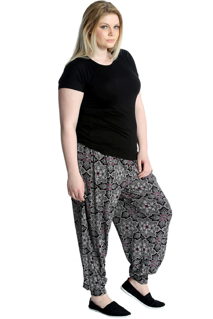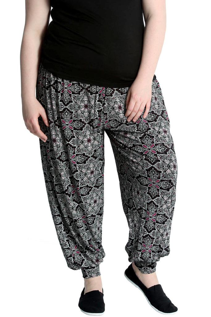 Tags: plus size harem trousers, paisley print pants, curve fashion, boho chic trousers, casual summer style, Nouvelle Collection