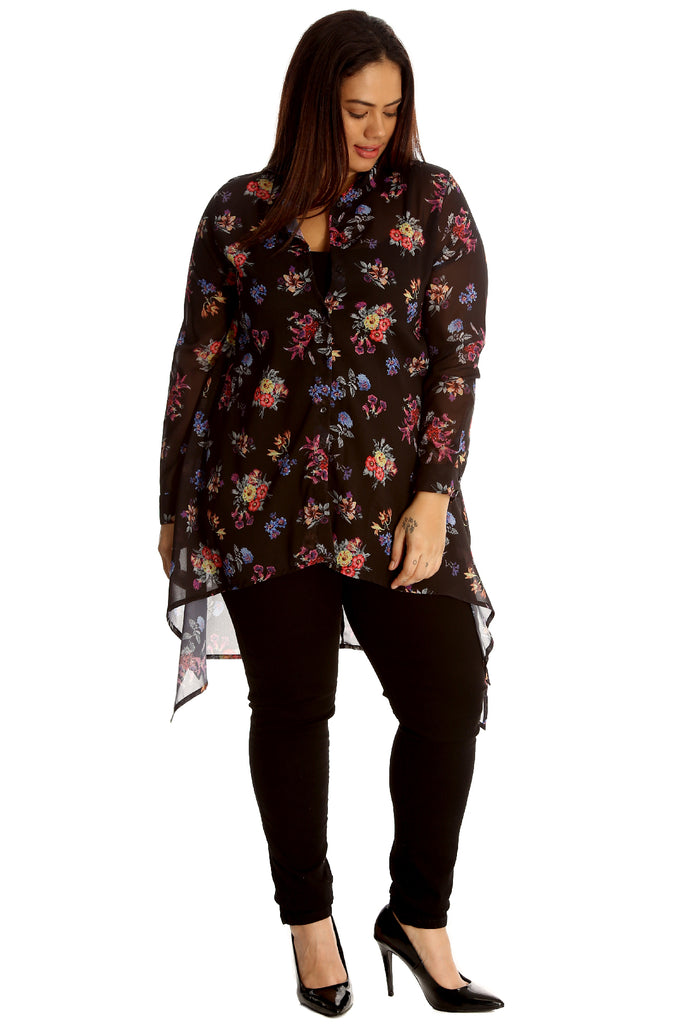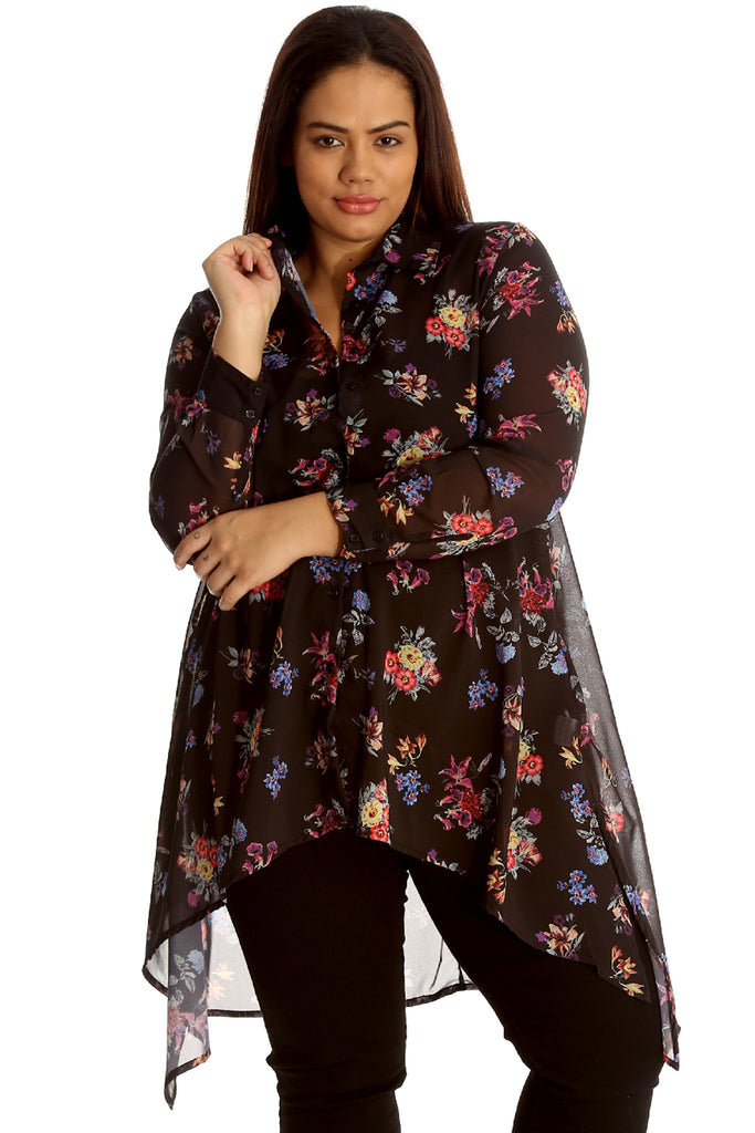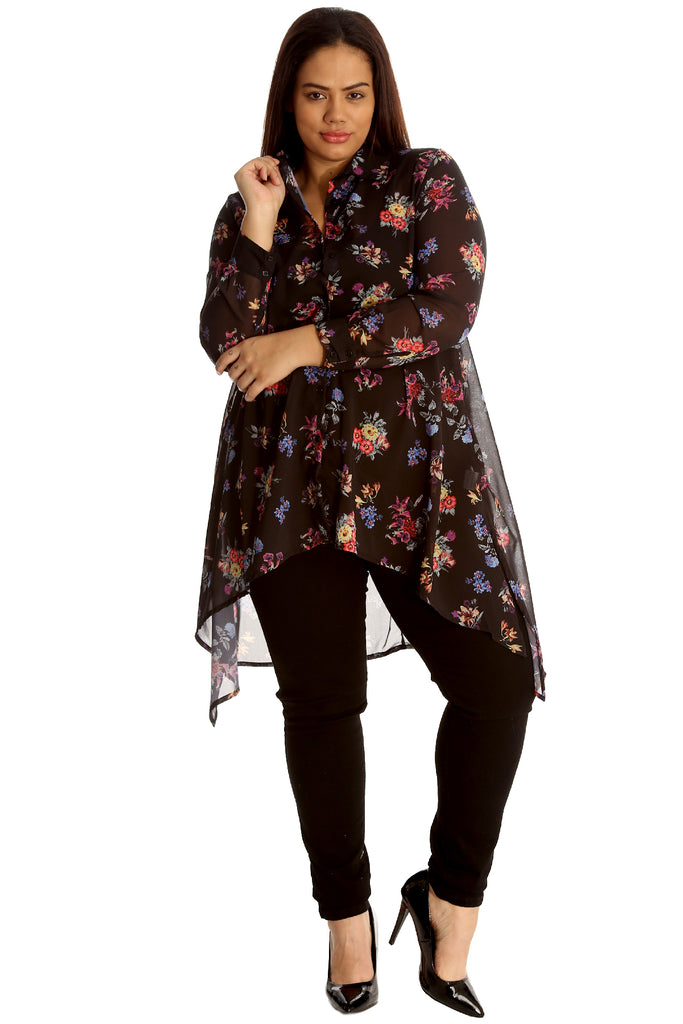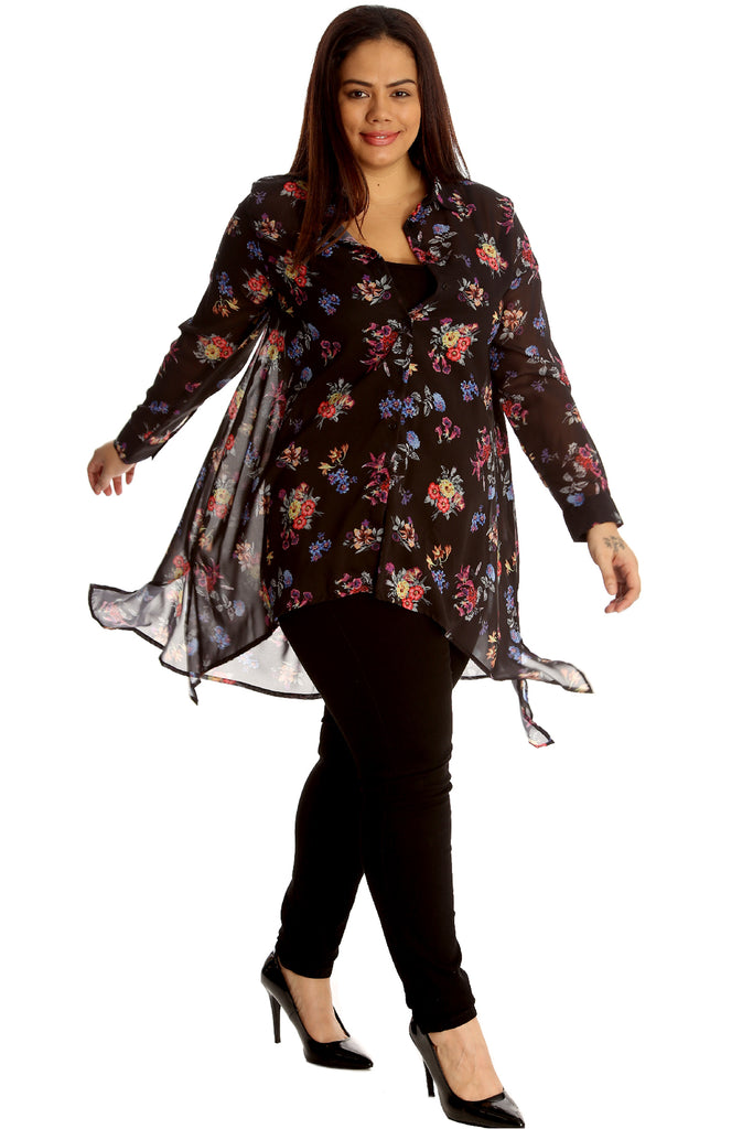 Crafted in lightweight chiffon, it drapes beautifully with a relaxed fit that flatters your curves. The delicate floral print adds a gentle charm, while the airy fabric keeps you cool and collected from day to night. Perfect for layering or wearing solo, this shirt moves with you stylishly, effortlessly, powerfully.