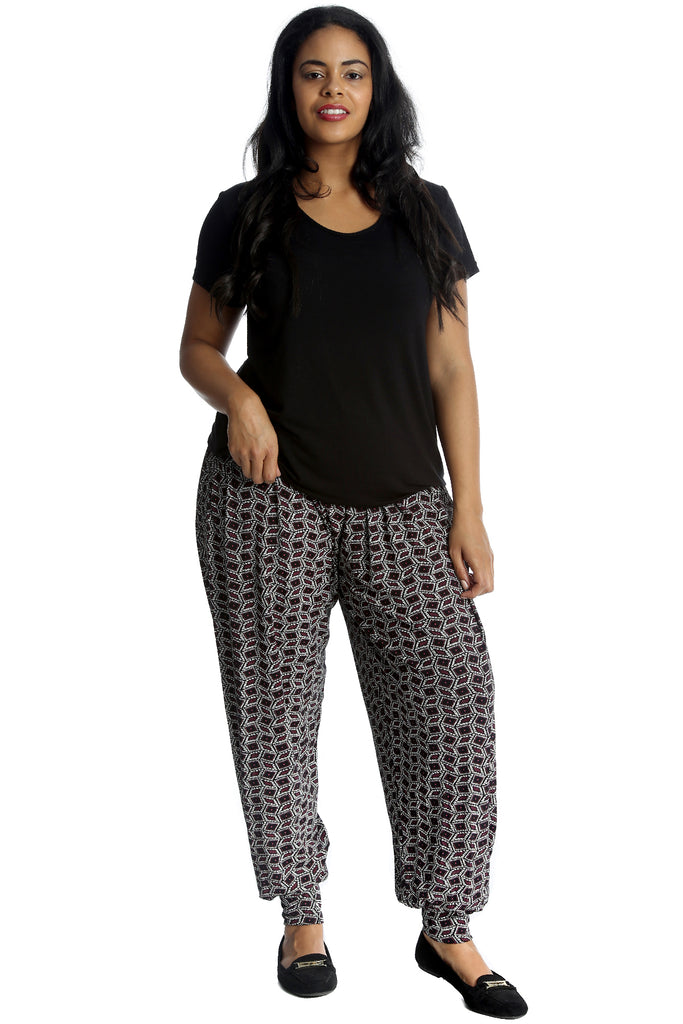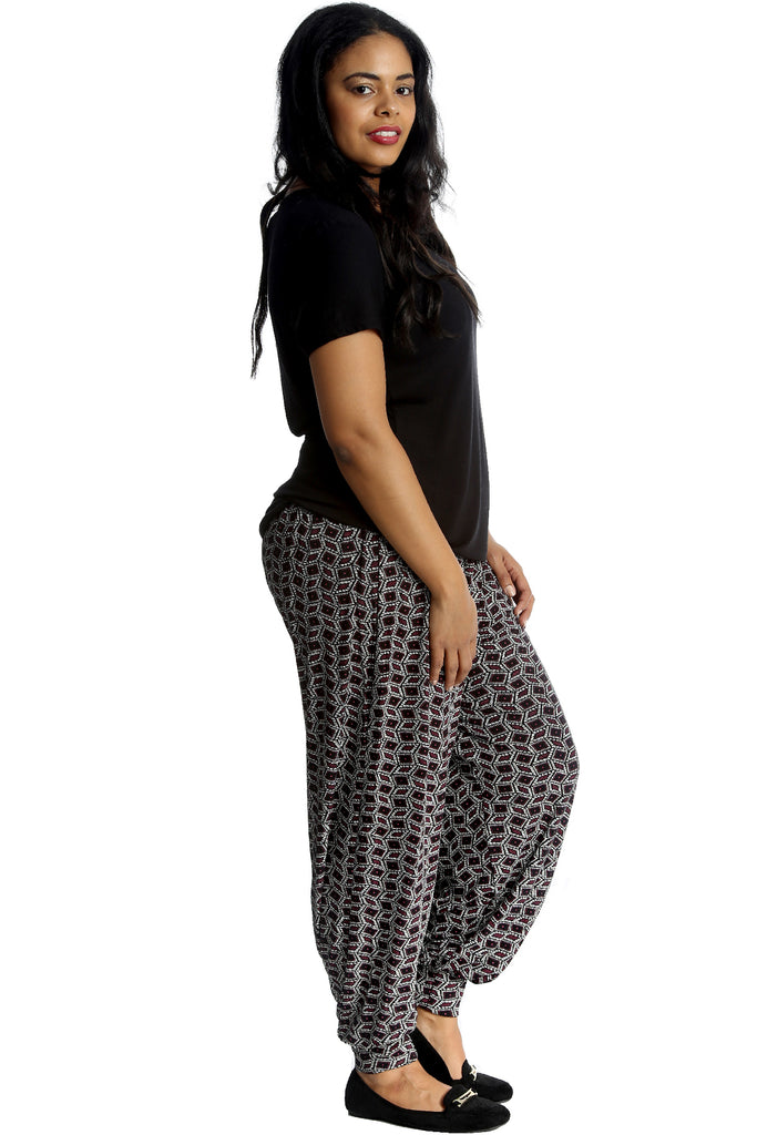 7087 Tile Mirror Print Harem Trousers Chic & Bold