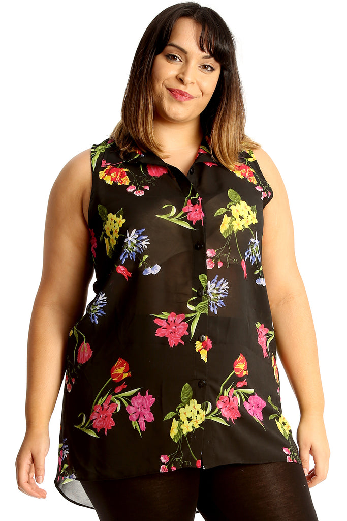 Turn heads and own your moment in this breezy Multi Floral Chiffon Shirt designed to let your confidence bloom loud and proud. Lightweight and effortlessly elegant, this sleeveless beauty combines a collared neckline with a cascade of vibrant floral prints that radiate joy and self-expression.